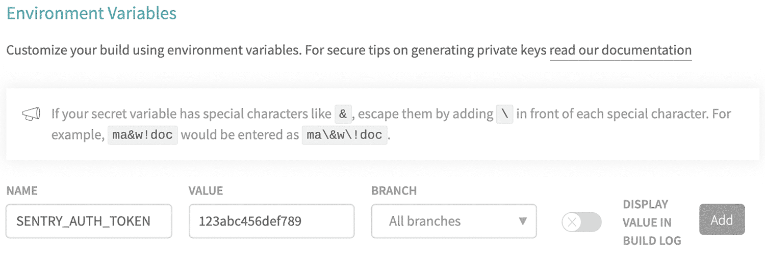 SENTRY_AUTH_TOKENas the name and your internal integration token as the value.